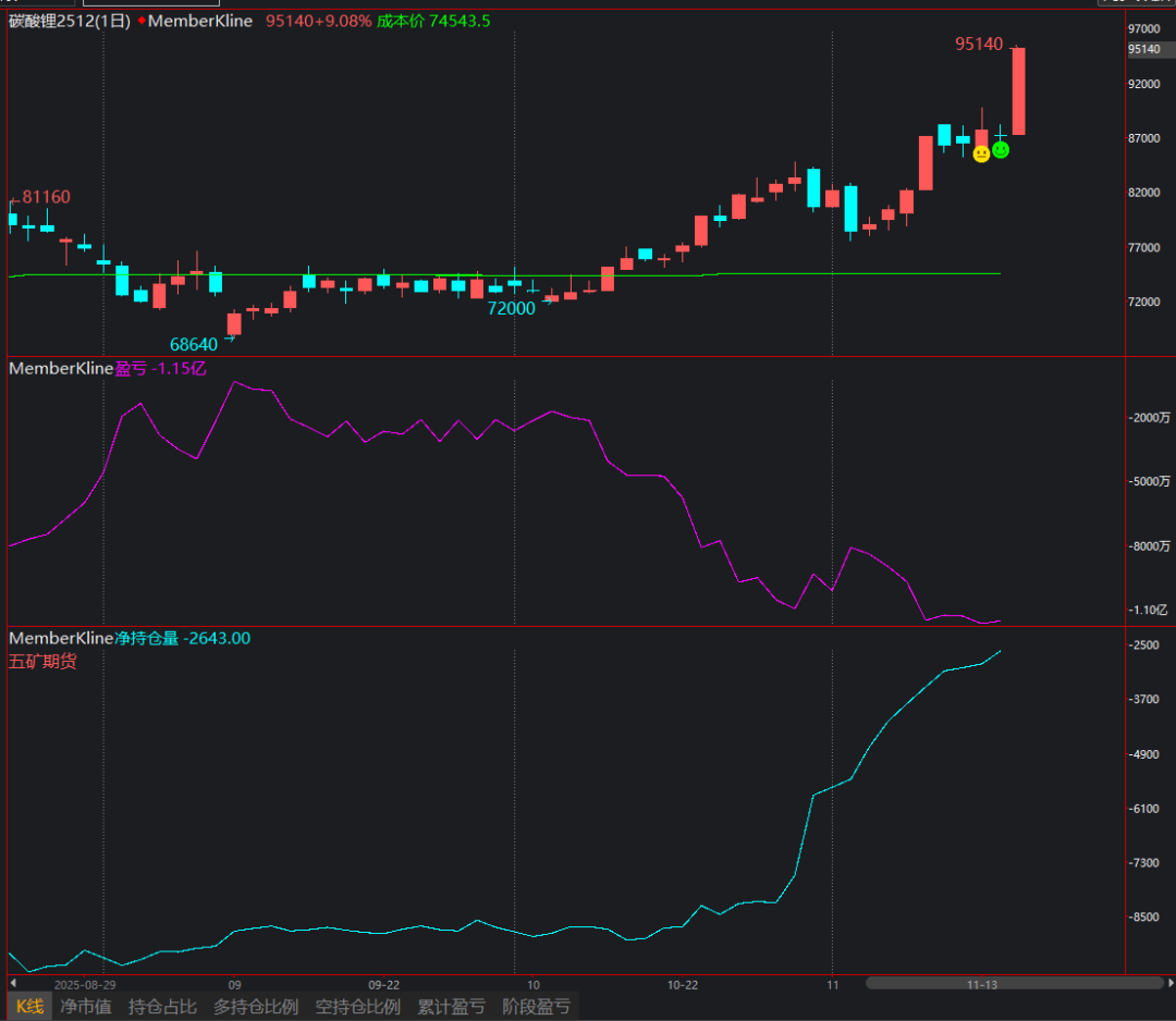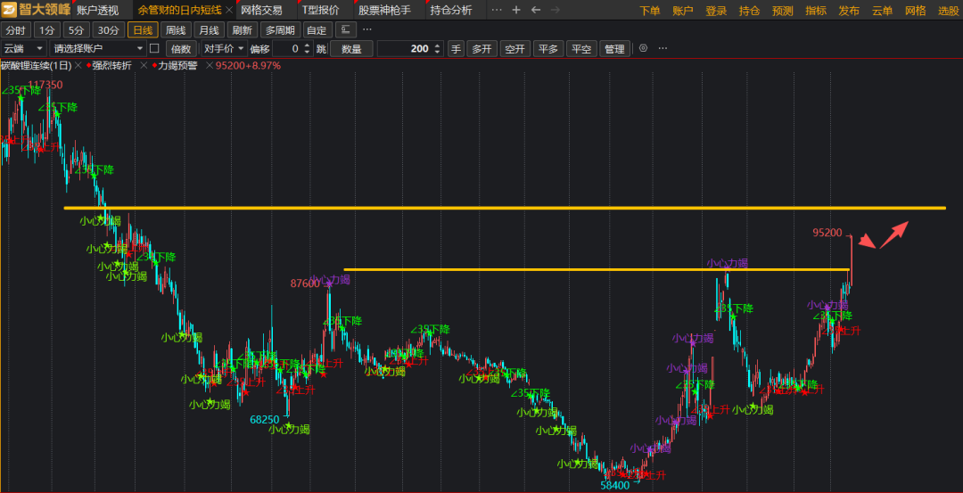 总结一下,碳酸锂破位上涨,多头趋势强,行业大佬看涨到15万点燃情绪,摸顶的需要谨慎,如果一定要摸,建议花点权利金搞搞期权。资金端国泰君安这种大机构开始做多了,这是趋势性的重要信号。
